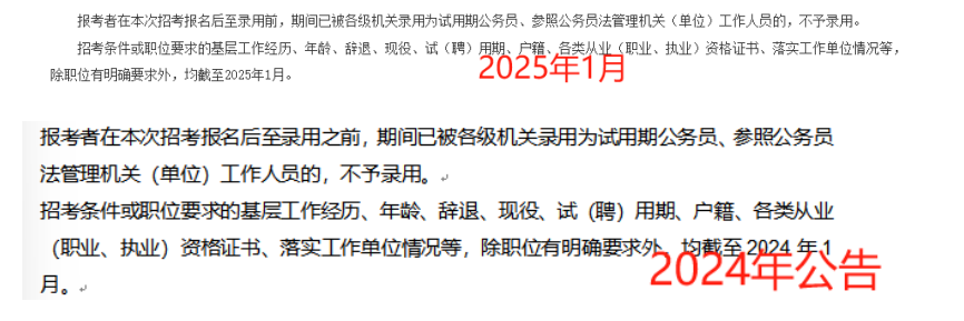 按照山西省往年惯例,在新一年的省考中,基层工作经历的计算截止时间会顺延一年,2025山西省考的基层工作经历计算截止时间为2025年1月,同安徽省考不同,山西省基层工作经历计算截止时间相对靠前。