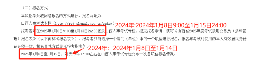 【公布报名情况】:2025年1月6日至1月12日,每天下午17:00左右在山西人事考试专栏公布一次各职位报名情况。