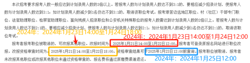 【改报时间】:2025年1月21日14:00至1月22日12:00。报考者可登录原报名网站进行职位改报。