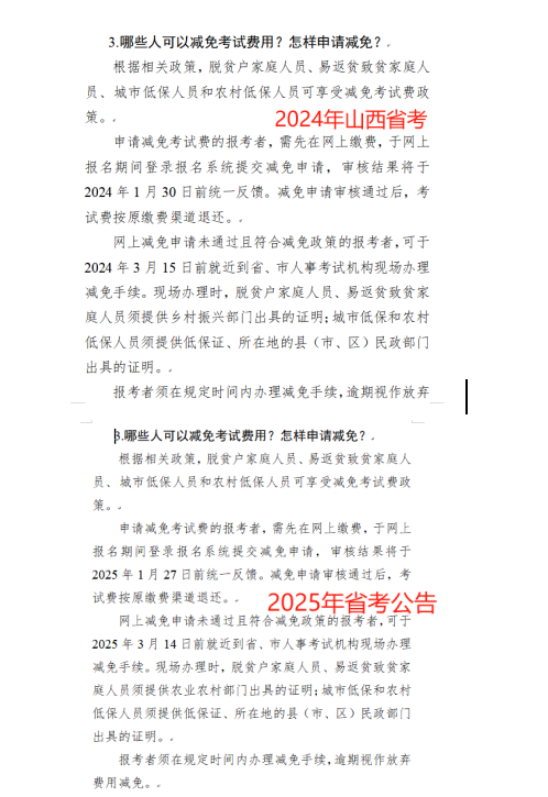 申请减免考试费的报考者,需先在网上缴费,于网上报名期间登录报名系统提交减免申请,审核结果将于2025年1月27日前统一反馈。减免申请审核通过后,考试费按原缴费渠道退还。具体流程不变,只是跟随报名时间改变后的微调。