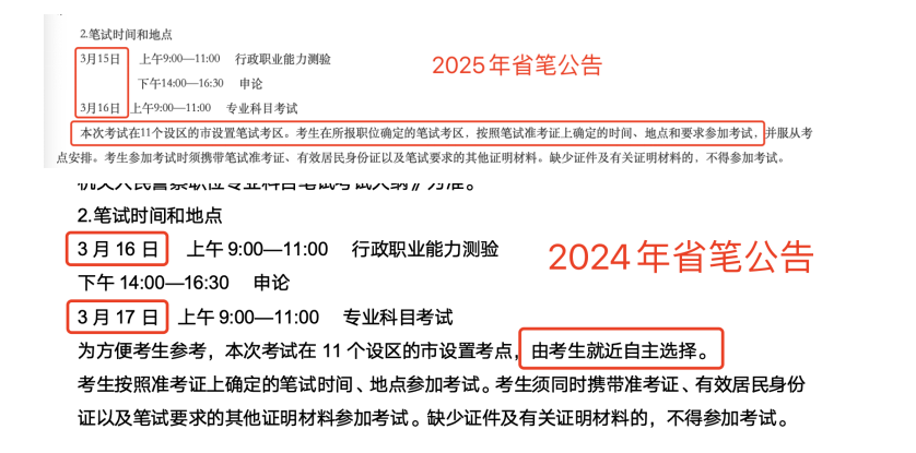 24省笔考区由考生就近自主选择,25省笔要求考生在所报职位确定的笔试考区